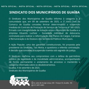 O Sindicato dos Municipários de Guaíba informa que conquistamos uma vitória significativa na justiça. Por meio de uma Ação Popular, conseguimos a suspensão imed...